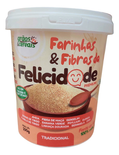 Dê uma nova definição à sua rotina de bem-estar com a Farinha da Felicidade, da Grãos e Cereais! Regulador Intestinal Natural: Enriquecida com fibras e nutrientes, a Farinha da Felicidade é o segredo para uma digestão saudável e um trânsito intestinal equilibrado. Sinta a diferença no seu bem-estar! Benefícios Incríveis da Farinha da Felicidade: Melhora a Digestão: A alta concentração de fibras auxilia no funcionamento regular do intestino e promove uma digestão mais eficiente. Nutrição Completa: Combinamos qualidade superior com um toque de carinho, para que você possa desfrutar de uma alimentação saborosa e equilibrada. Ingredientes: Farinha de aveia, fibra de maça, gergelim torrado, germe de trigo, farinha de banana verde, psyllium husk, farinha de quinoa, farelo de trigo, farinha de linhaça dourada, farinha de beringela, farinha de chia. Alérgicos: Contém aveia e glúten. Pode conter cevada, centeio e soja. Conservação: Após aberto consumir em até 40 dias, conservando bem tampado e armazenado na geladeira. Sugestão de Consumo: Duas colheres de sopa. Misturar bem com iogurte, leite, água, sucos, etc.