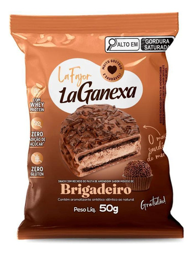 O seu brigadeiro FIT crocante! Recheado com a nossa deliciosa pasta sabor Mousse de Brigadeiro, e coberto com granulado zero açúcar, esse La Fajor te permite saciar aquela vontade de doce a qualquer hora em qualquer lugar, pois cabe na bolsa. Por último e mais importante, contém o nosso ingrediente secreto que faz toda a diferença: muito amor. Sua dieta agradece! INGREDIENTE Maltitol, pasta de amendoim sabor brigadeiro La Ganexa, gordura vegetal, leite desnatado em pó, amido de mandioca, farinha de arroz, cacau em pó, polidextrose, sal, aromatizantes, emulsificantes lecitina de soja e polirricinoleato de poliglicerol, espessante goma xantana e edulcorante stevia. NÃO CONTÉM GLÚTEN. CONTÉM LACTOSE. Confira a tabela nutricional do La Fajor sabor Brigadeiro! Cada embalagem contém uma porção de 50 gramas, equivalente a um alfajor. Aqui estão as informações nutricionais para uma porção de 50 gramas: Valor energético: 222 calorias, representando 11% do valor diário recomendado. Carboidratos totais: 27 gramas, o que equivale a 9% do valor diário. Açúcares totais: 5,3 gramas. Aviso de açúcar: 0 gramas. Proteínas: 4,9 gramas, contribuindo com 10% do valor diário. Gorduras totais: 13 gramas, que correspondem a 24% do valor diário. Gorduras saturadas: 8,3 gramas, representando 42% do valor diário. Gorduras trans: 0 gramas. Fibras alimentares: 3 gramas, que correspondem a 12% do valor diário. Sódio: 107 miligramas, equivalente a 5% do valor diário. Para referência, aqui estão os valores por 100 gramas do produto: Valor energético: 444 calorias. Carboidratos totais: 53 gramas. Açúcares no total: 11 gramas. Açúcar adicionado: 0 gramas. Proteínas: 9,9 gramas. Gorduras totais: 26 gramas. Gorduras saturadas: 16,7 gramas. Gorduras trans: 0 gramas. Fibras alimentares: 6 gramas. Sódio: 215 miligramas. Esses valores diários de referência são baseados em uma dieta de 2.000 calorias. Lembre-se de que suas necessidades diárias podem ser maiores ou menores, dependendo de suas necessidades energéticas. ALÉRGICOS: contém derivados de leite, amendoim e soja. pode conter avelã.