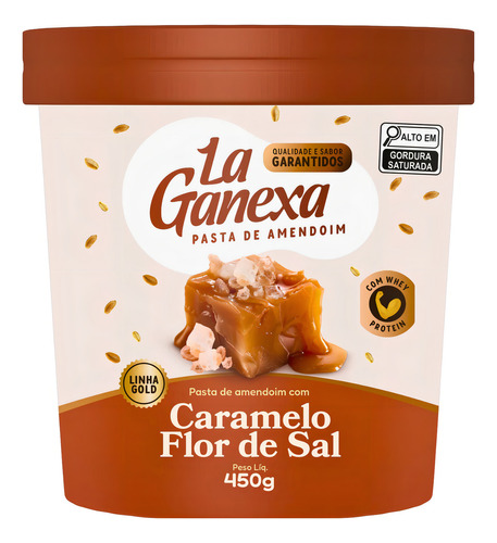A Pasta de Amendoim La Ganexa Caramelo Flor De Sal Whey Protein é uma opção gourmet deliciosa e nutritiva. Com um sabor único de caramelo e flor de sal, é perfeita para quem busca uma experiência diferenciada. O pote de 450g contém uma pasta de amendoim cremosa e de alta qualidade, ideal para acompanhar diversas refeições e lanches. A embalagem única garante a conservação do produto, mantendo seu sabor e textura originais por mais tempo. - Whey Protein; - Zero açúcar; - Zero glúten. Produto obtido da moagem de grãos de amendoim integrais, sem pele, torrados e moídos até granulometria adequada, adicionados de soro de leite, creme de leite, sem adição de açúcares ou de ingredientes adicionados de açúcares. Embalados em potes plásticos selados hermeticamente. INGREDIENTES Amendoim torrado, recheio sabor caramelo salgado (Óleo vegetal, leite em pó, cacau em pó, gordura vegetal, sal, estabilizante maltitol (INS965i), emulsificantes lecitina de soja e ésteres de poliglicerol com ácido ricinoléico, aromatizantes, corante urucum e antioxidante BHT), leite em pó desnatado, whey protein, crispies sabor caramelo sem adição de açúcares, sal do Himalaia e edulcorante sucralose. NÃO CONTÉM GLÚTEN. CONTÉM LACTOSE. ALÉRGICOS: CONTÉM AMENDOIM, DERIVADOS DE LEITE E DERIVADO DE SOJA.