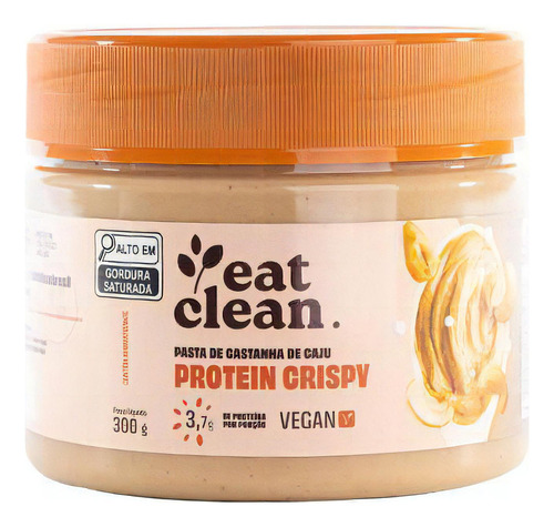 Pasta de castanha de caju protein crispy - 300g Sem glúten Vegana Sem adição de açúcar 100% à base de plantas Pasta de castanha de caju Pasta de castanha de caju protein: cremosa, crocante, vegana e com proteína. A castanha de caju é um alimento rico em gorduras insaturadas, conhecidas como gorduras saudáveis, que tem benefícios comprovados para a saúde do coração, auxiliando no controle do colesterol. Adicionamos proteína de arroz e crispies de quinoa. Oferecendo assim 3,7g de proteína, nutriente importante para construção de estruturas no nosso organismo, como músculo, pele, cabelo, entre outros. Por combinar gorduras e proteínas no mesmo alimento, possui papel fundamental no controle do apetite, promovendo saciedade e auxiliando em dietas de emagrecimento. Ela é uma opção de pasta mais neutra, levemente adoçada, com o gosto natural da castanha de caju. Uma opção versátil, para acompanhar e nutrir os lanchinhos intermediários. E ah ela também é: 100% natural, sem glúten, lactose. Incrivelmente deliciosa Ingredientes Castanha-de-caju torrada, proteína de arroz, edulcorante natural xylitol, crispies de quinoa e aroma natural. Alérgicos: contém castanha-de-caju. Pode conter amendoim, macadâmia, avelã e amêndoa. Sugestão de consumo Com frutas, na tapioca, mingau, com bolacha de arroz, torradinhas, na panqueca ou do jeito que a sua criatividade permitir Informação nutricional Porção por embalagem: 20 porções. Porção de 15 g (1 colher de sopa) 100 g 15 g % vd Valor energético (kcal) 525 79 4 Carboidratos (g) 28 4,1 1 Açúcares totais (g) 0 0 0 Açúcares adicionais (g) 0 0 0 Proteínas (g) 24 3,7 7 Gorduras totais (g) 39 5,8 9 Gorduras saturadas (g) 7,5 1,1 6 Gorduras trans (g) 0 0 0 Fibra alimentar (g) 3,7 0,6 2 Sódio (mg) 3,6 0,5 0 Percentual de valores diário fornecido pela porção. Vd não estabelecido. Dica de consumo: Como cobertura para sua waffle.